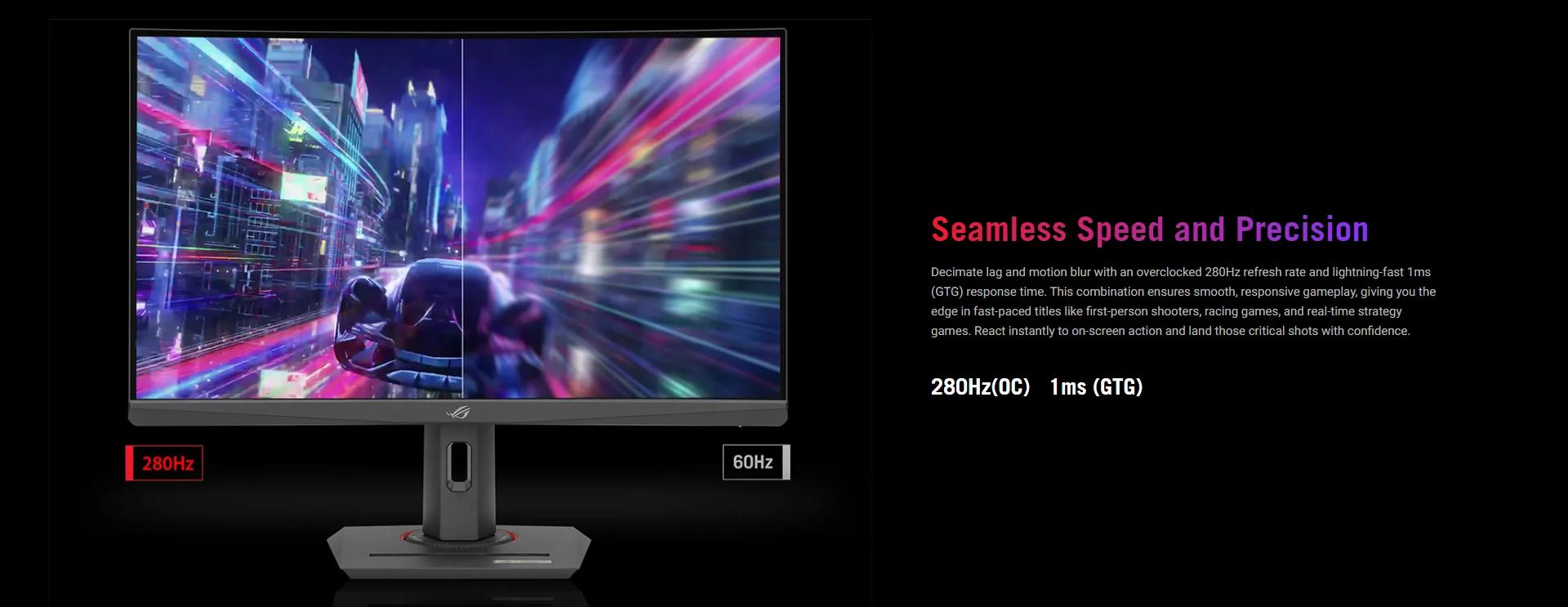 Ultrafast 280Hz (OC) Refresh Rate: Experience flawlessly smooth gaming. The 280Hz overclocked refresh rate is designed for professional gamers who demand absolute fluidity.