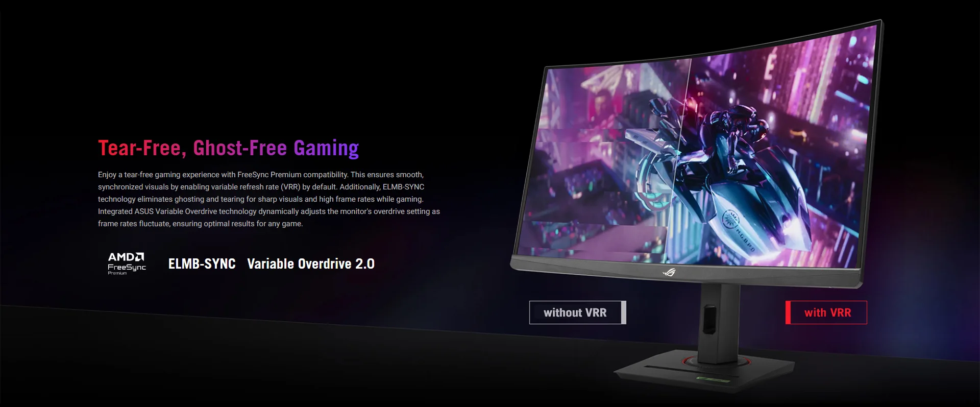 ELMB SYNC: ASUS-exclusive technology allows Extreme Low Motion Blur to work simultaneously with Variable Refresh Rate (VRR) for a sharp, tear-free experience.
