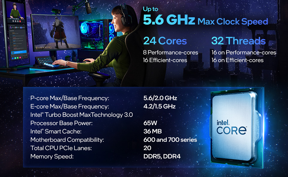 The Intel Thread Director dynamically manages workloads across cores, optimizing performance and responsiveness. With support for both DDR4-3200 and DDR5-5600 memory, users have the flexibility to configure their system for ultimate speed or value.
