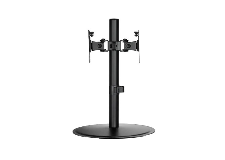 The integrated cable management system keeps wiring organized and out of sight, creating a clean, professional setup. Its sturdy pedestal base enhances stability and fits most workstations, delivering a reliable and efficient monitor support solution.