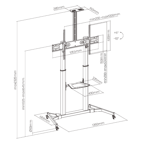 Built from reinforced steel and durable plastic, the structure supports up to 100kg (220 lbs), ensuring dependable strength for even the largest displays. The height-adjustable telescopic column (up to 1660 mm) allows users to set the screen to an optimal viewing level, while the +5° to -10° tilt range provides effortless glare reduction and superior comfort.